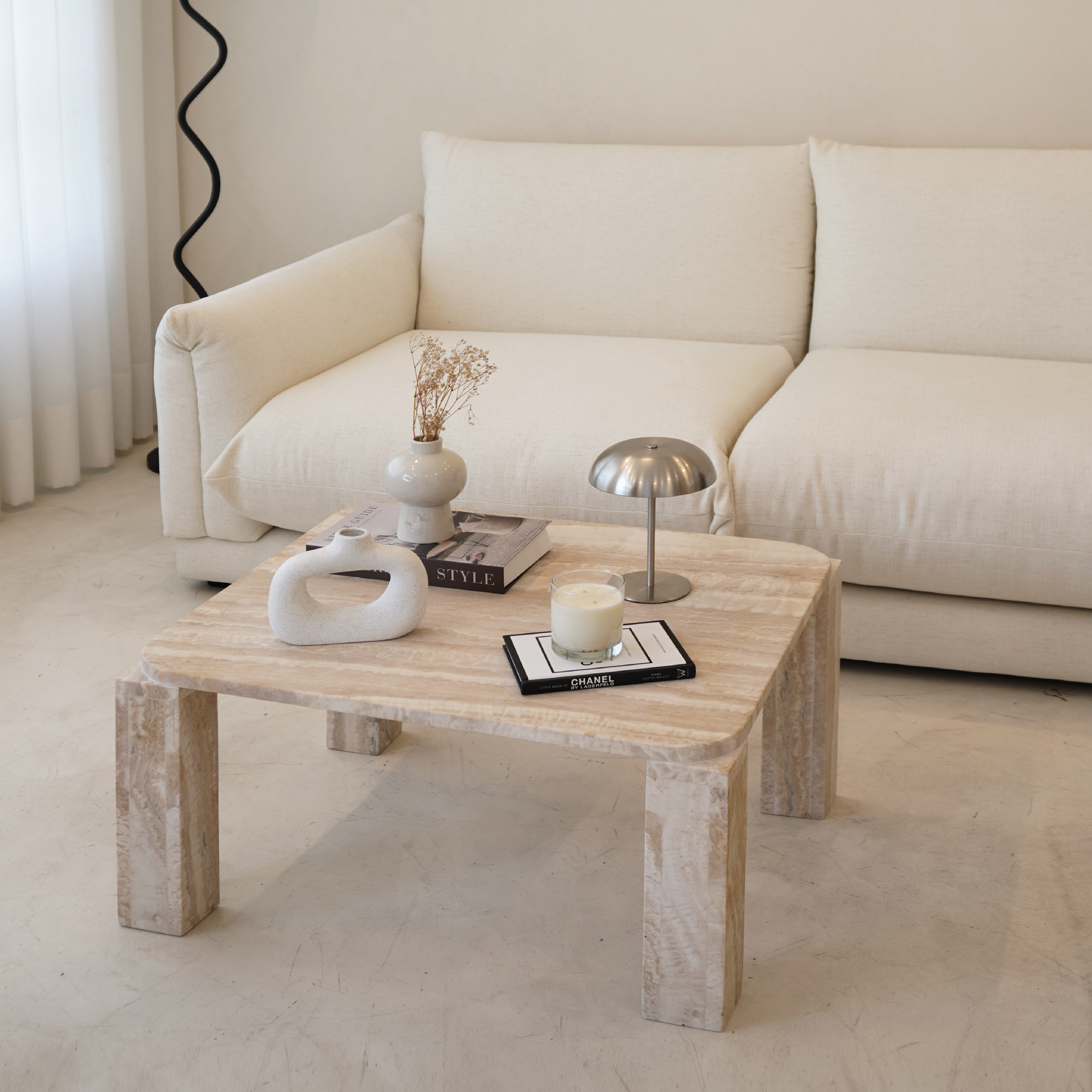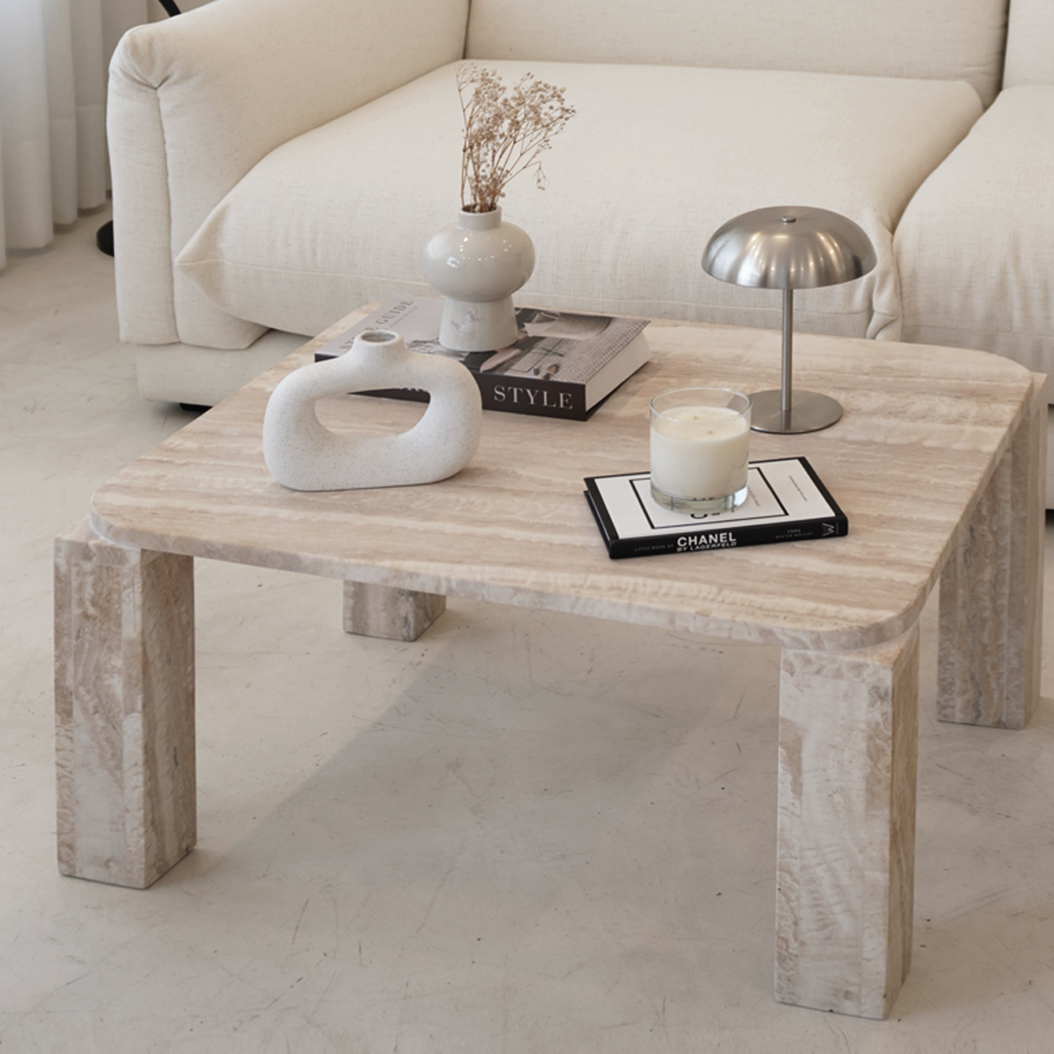 MaterialTablero mármol beige Travertino. Patas mármol beige Travertino.